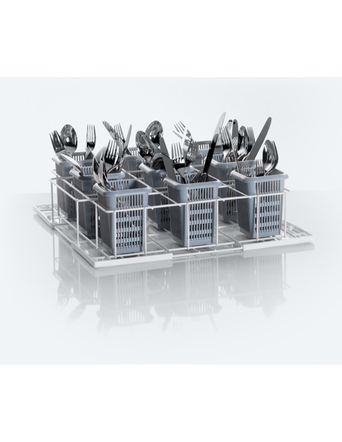 Cesta con 8 compartimentos tubulares para cubiertos.Dimensiones: 440 x 210 x 260 mm.