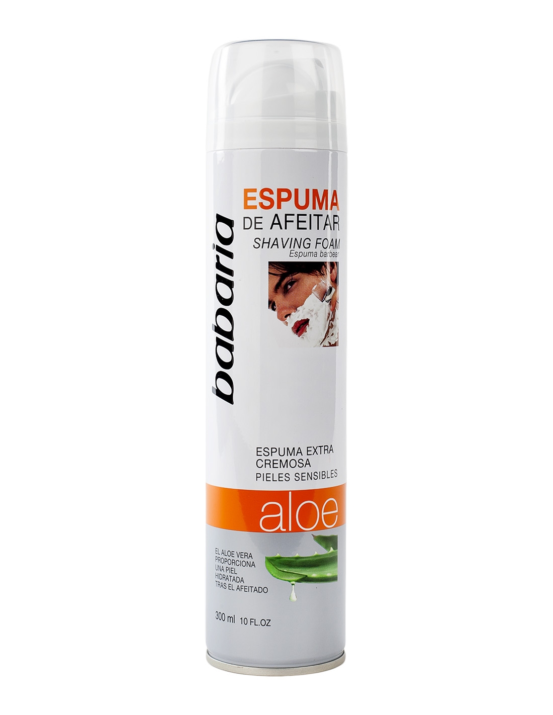 Espuma de afeitar Babaria en formato de 300 ml, con aloe vera y glicerina que retienen la humedad de la piel y la mantienen tersa y suave. Es ideal para el uso en la higiene diaria.