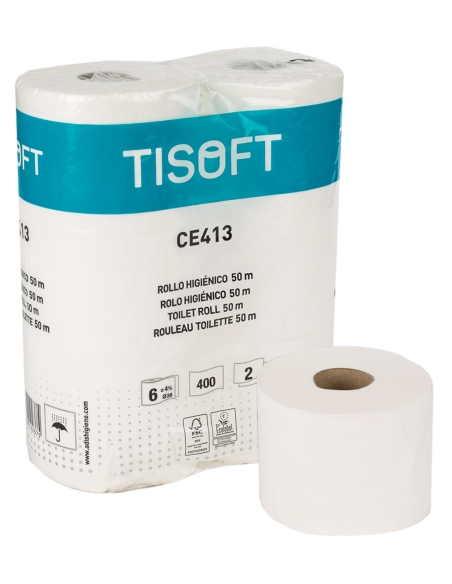 Papel higiénico doméstico de 50 metros, con dos capas que aseguran una gran suavidad y capacidad de absorción. Cuenta con el certificado Ecolabel, por lo que es un producto respetuoso con el medio ambiente.