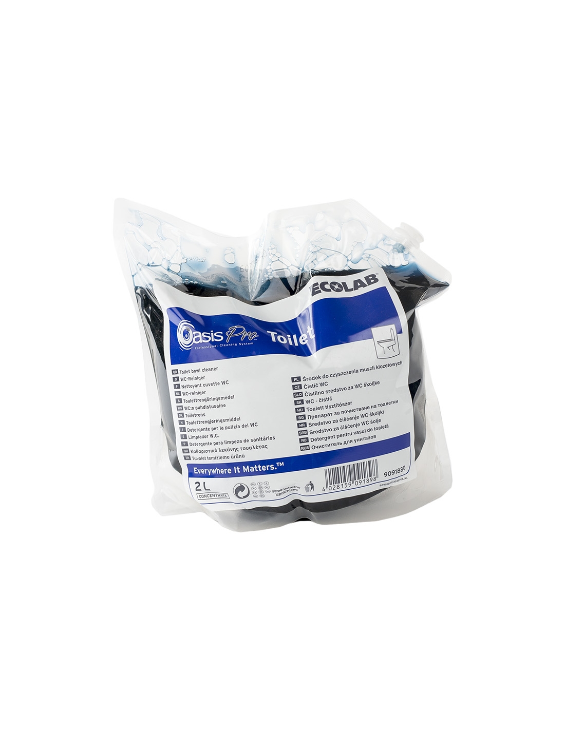Limpiador de inodoros de Ecolab en formato bolsa de 2L, de elevada viscosidad que no solo elimina la cal y los restos orgánicos incrustados, sino que también mejora la eficiencia al retardar su acumulación gracias a los agentes tensioactivos quecontiene, es un producto muy concentrado para obtener resultados excelentes. Elimina fácilmente los depósitos de cal y los restos orgánicos incrustados.
